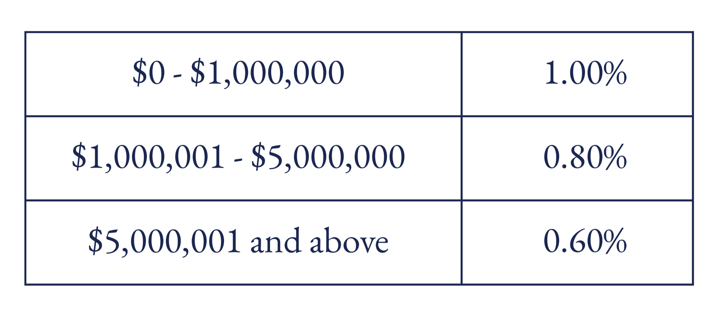 Our investment advisory fee is tiered, so as your assets grow, your effective fee declines.